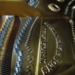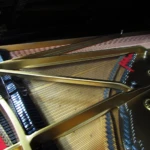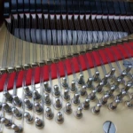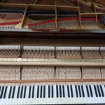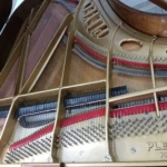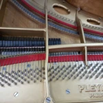 Piano Pleyel restaurado com novas cordas, bordões, marteleiras, tambores, embuxamento e cravelhas.